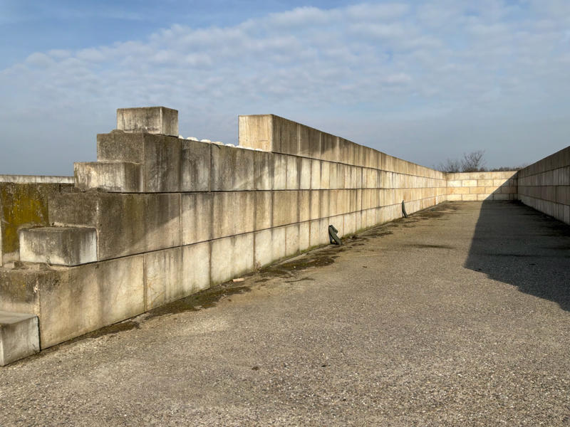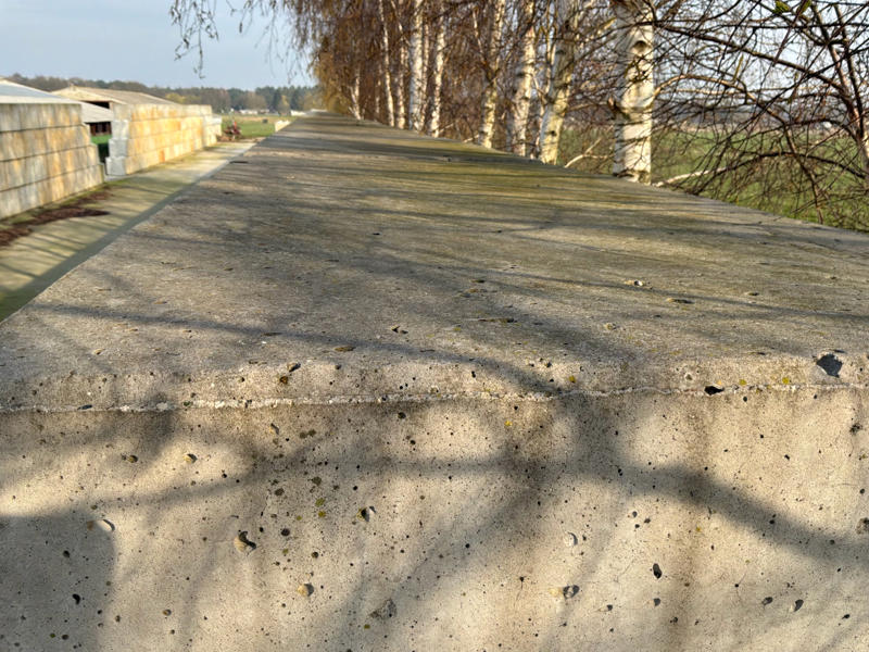 Bitte beachten Sie: diese Wand steht in einem geringen Abstand zur betonierten Stützmauer, was zu einer besonderen Verladetechnik führen kann (dies ist auf dem ersten Foto sichtbar).