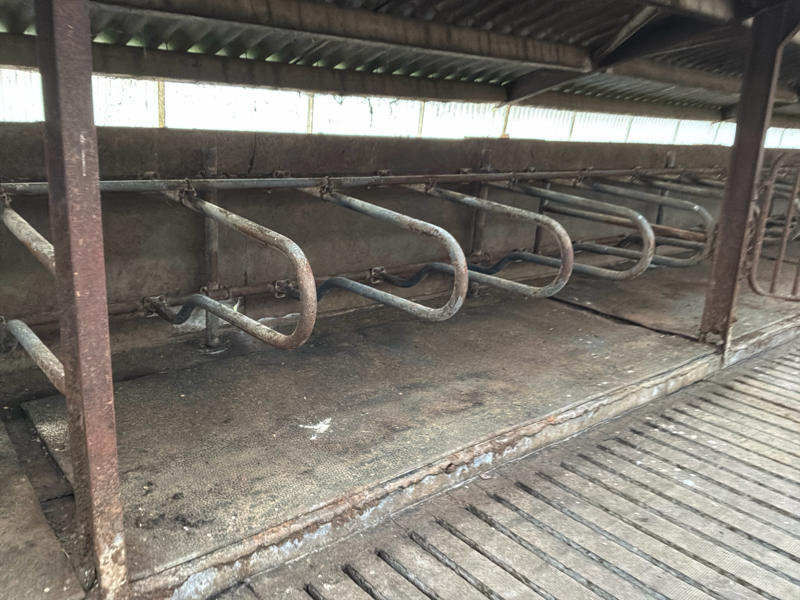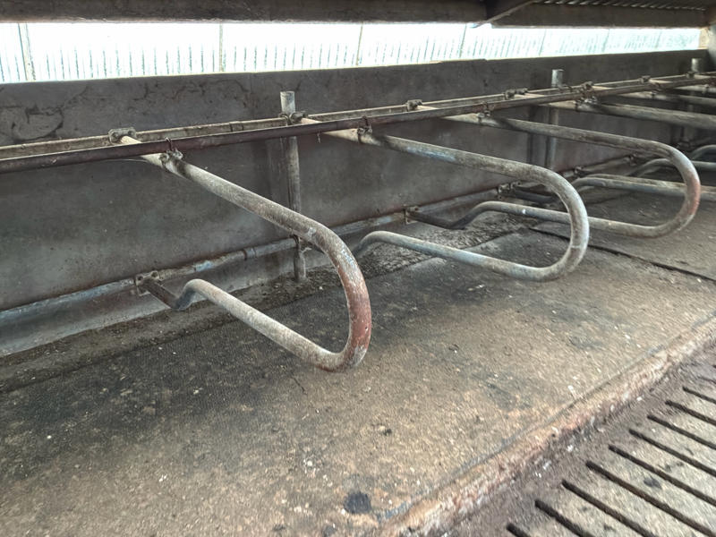 Screwed on horizontal tube, stand posts cast in concrete floor